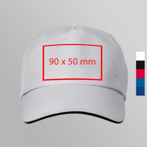 These 6-Panel Baseball Caps are embroidered to the front at an area of 60 x 40 mm in a centred position.