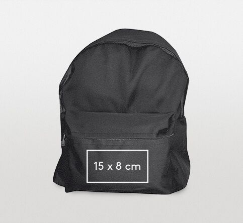 Backpacks have a printed area of 150 x 80 mm